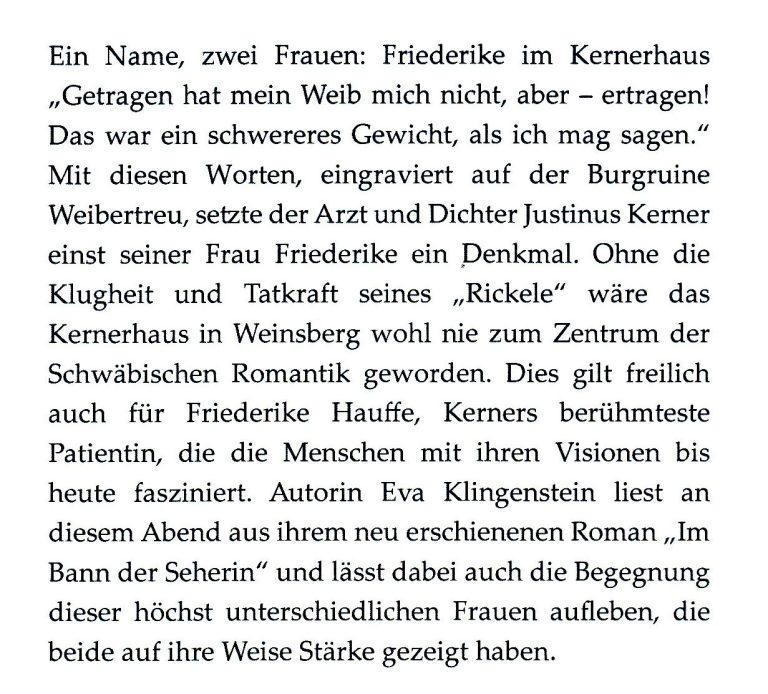 Organisiert vom Justinus-Kerner-Verein und Frauenverein Weinsberg